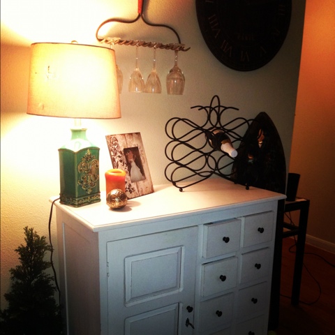 Anywho, they gifted to me a lovely rake end from their patio and I've turned this gorgeous piece of furniture we have into a little drink station.
